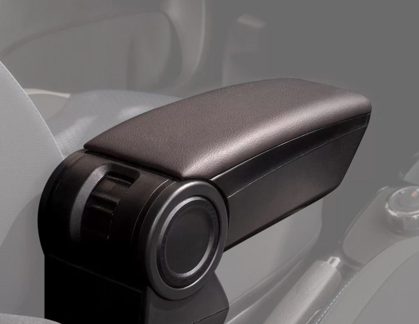 Sklopná loketní opěrka pro montáž vedle sedadla řidiče. Vyznačuje se velkým úložným prostorem s protiskluzovou vložkou, čalouněným povrchem s koženkovým potahem, možností výškového a úhlového nastavení, funkcí šetrného otvírání a zavírání a posuvným krytem. Úložný prostor o obsahu cca 1 l, tělo opěrky v černém provedení. Součástí dodané opěrky je montážní kovový adaptér pro určitý model vozidla